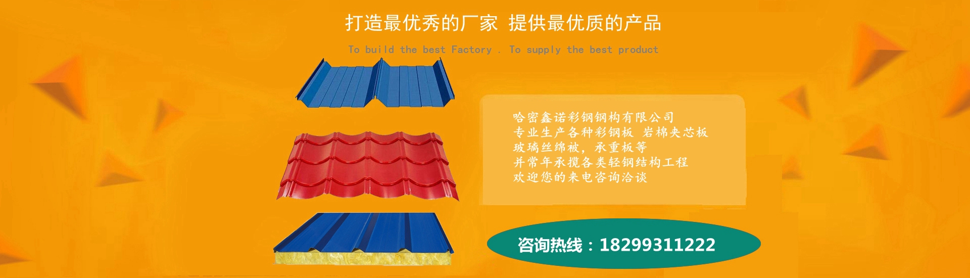 哈密彩鋼-哈密鑫諾彩鋼鋼構(gòu)有限公司是集生產(chǎn)、銷(xiāo)售、安裝彩色壓型板,保溫夾芯板、C、Z型鋼檁條,輕鋼結(jié)構(gòu)于一體的集團(tuán)化公司。公司擁有一批專(zhuān)業(yè)的工程師、設(shè)計(jì)師和熟練的技術(shù)隊(duì)伍,并擁有現(xiàn)代化的管理機(jī)構(gòu)。我們承諾免費(fèi)為用戶(hù)設(shè)計(jì)、咨詢(xún)哈密彩鋼板、哈密輕鋼結(jié)構(gòu)工程的安裝繪圖,承接各種彩鋼工程的制作、安裝,住房民宅、樓房加層、建筑圍擋等等。我公司先后參與了多項(xiàng)省市重點(diǎn)工程項(xiàng)目,獲得了廣大客戶(hù)的一致信賴(lài)和好評(píng)。在哈密彩鋼鋼結(jié)構(gòu),以及哈密彩鋼板上的銷(xiāo)量一直穩(wěn)居前列,是哈密彩鋼廠(chǎng)中的翹楚。我公司承接過(guò)眾多的哈密鋼結(jié)構(gòu)工程項(xiàng)目,施工經(jīng)驗(yàn)豐富。歡迎您的來(lái)電咨詢(xún)洽談,我們24小時(shí)服務(wù)熱線(xiàn)隨時(shí)恭候您的來(lái)電。哈密彩鋼鋼結(jié)構(gòu)全體工作人員真誠(chéng)的期待與您合作共贏(yíng)。  哈密鑫諾彩鋼鋼構(gòu)有限公司建廠(chǎng)以來(lái),始終秉承"客戶(hù)至上、質(zhì)量上乘、價(jià)格從優(yōu)"的經(jīng)營(yíng)理念,信守產(chǎn)品就是人格的企業(yè)...